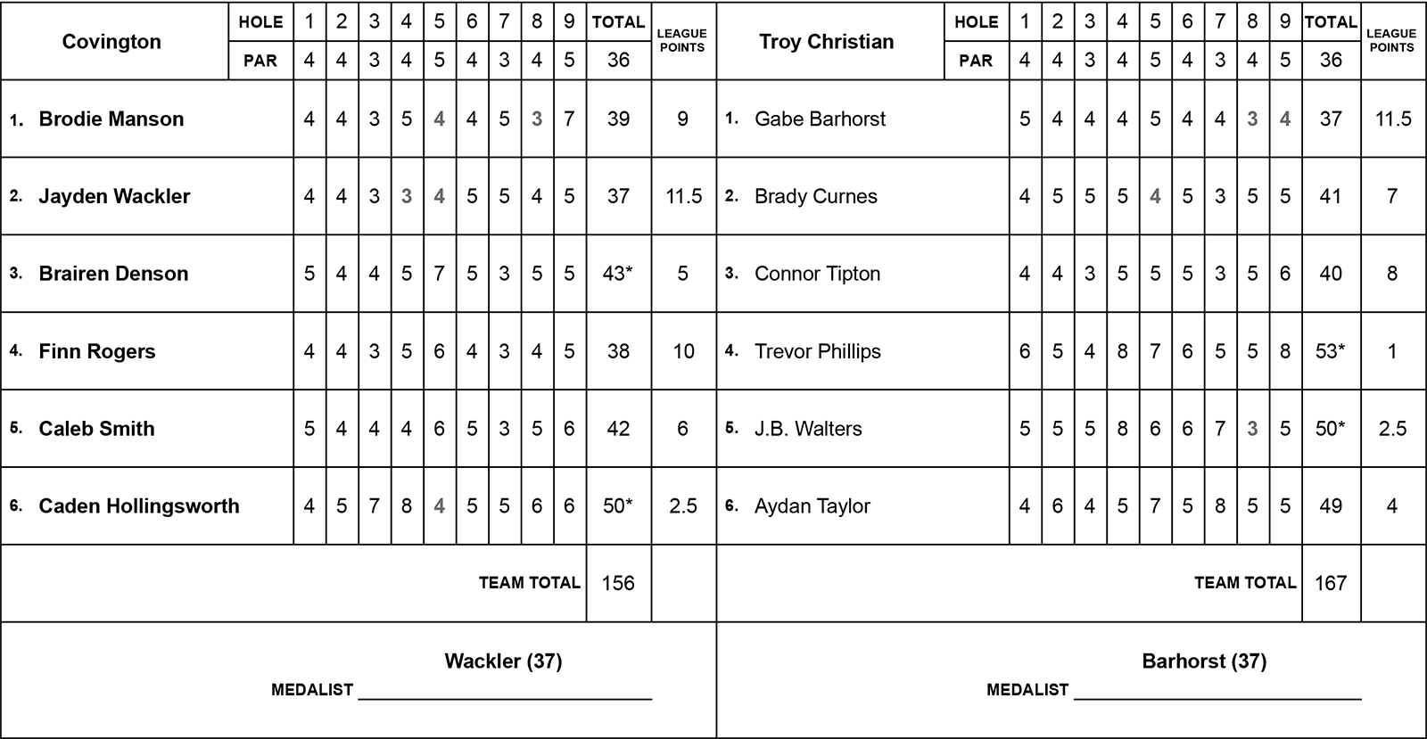 PIQUA – The Covington Buccaneers recorded their best score so far this season with 156 strokes to defeat Troy Christian by 11 strokes at Echo Hills.